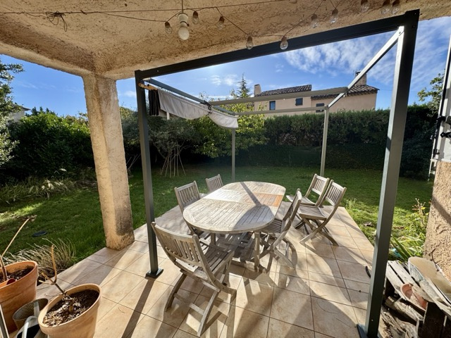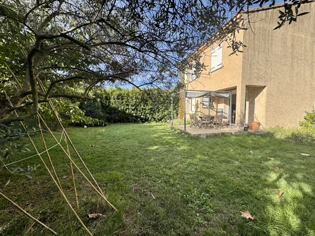 Cette maison T5 de 99,55 m² en location en plein centre du charmant village d'Eguilles se compose, au RDC, d'un hall d'entrée, d'un séjour double de 28,19 m² avec accès à une terrasse et au jardin arboré, d'une cuisine séparée aménagée, d’un cellier, d'un WC séparé avec lave mains et, à l’étage, de 3 chambres avec grands placards, d’une salle de bains et d'un WC séparé. Jouissance d'un terrain d'env 500 m² clos et arboré. Un auvent servant de parking couvert pour une voiture, une autre place et un abri jardin complètent ce bien. Maison propre et fonctionnelle, au calme, à 2 pas des commerces, écoles et bus à pied. Disponible le 5 Novembre 2025.