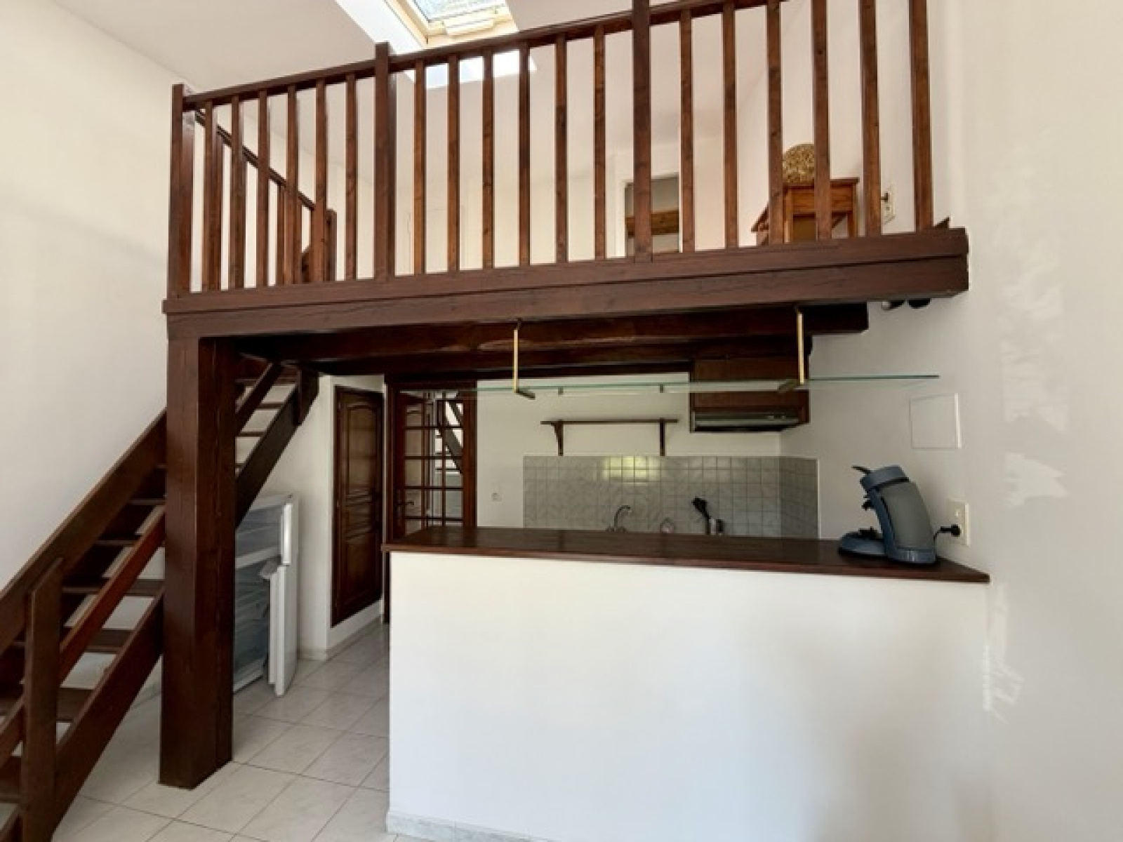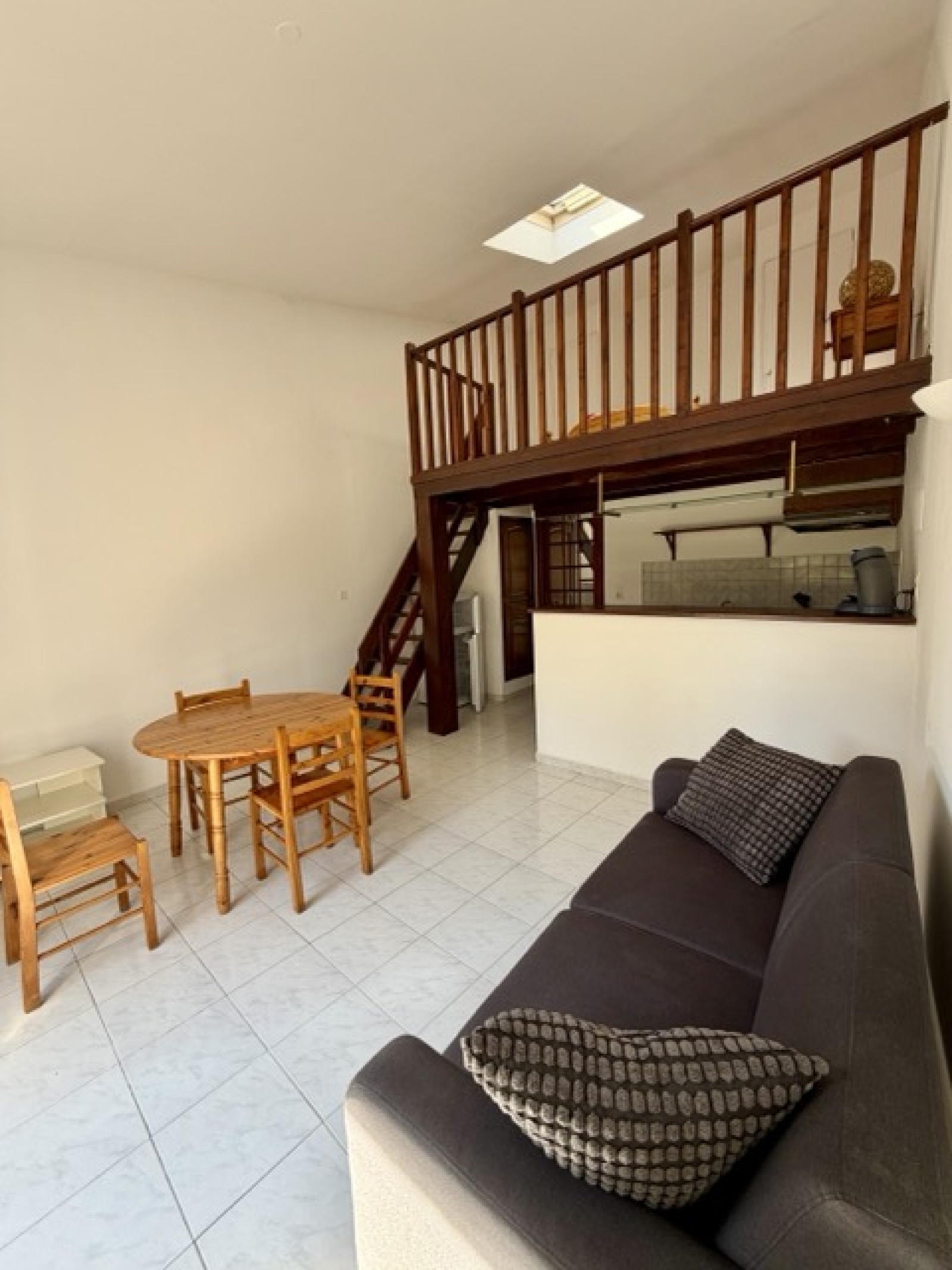 Cet appartement T2 de 38,23 m², en location dans le centre de l’agréable village des Milles, se compose d'une cuisine US entièrement équipée ouvrant sur séjour avec accès à une terrasse privative, d'une chambre en duplex (mezzanine) avec 2 rangements et d'une salle de bains avec WC. Commodités à pied. Disponible immédiatement. Loué meublé.