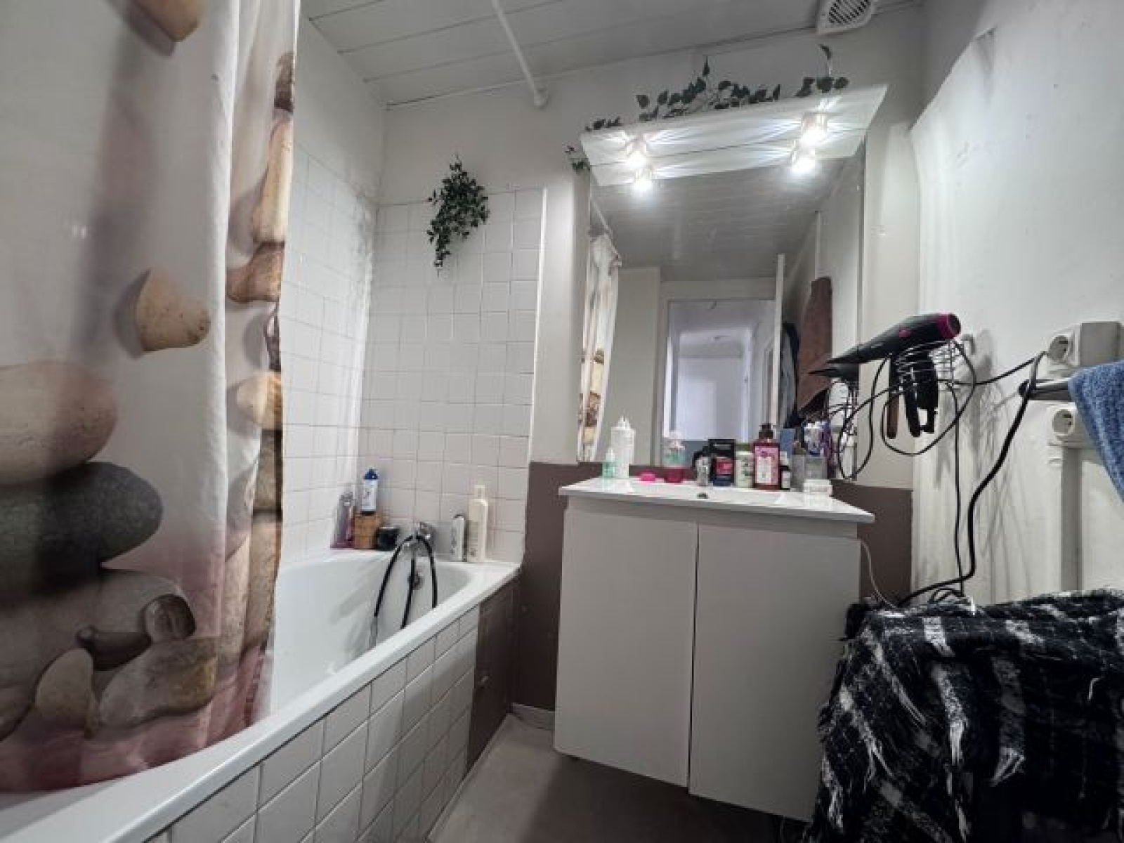 - R+2 : un appartement T2 d'env 58 m² comprenant un séjour, une cuisine indépendante, une chambre, une salle de bain et un WC séparé. Actuellement avec locataire pour un loyer mensuel de 400 €. CLASSE ENERGIE : E et CLASSE CLIMAT : B.