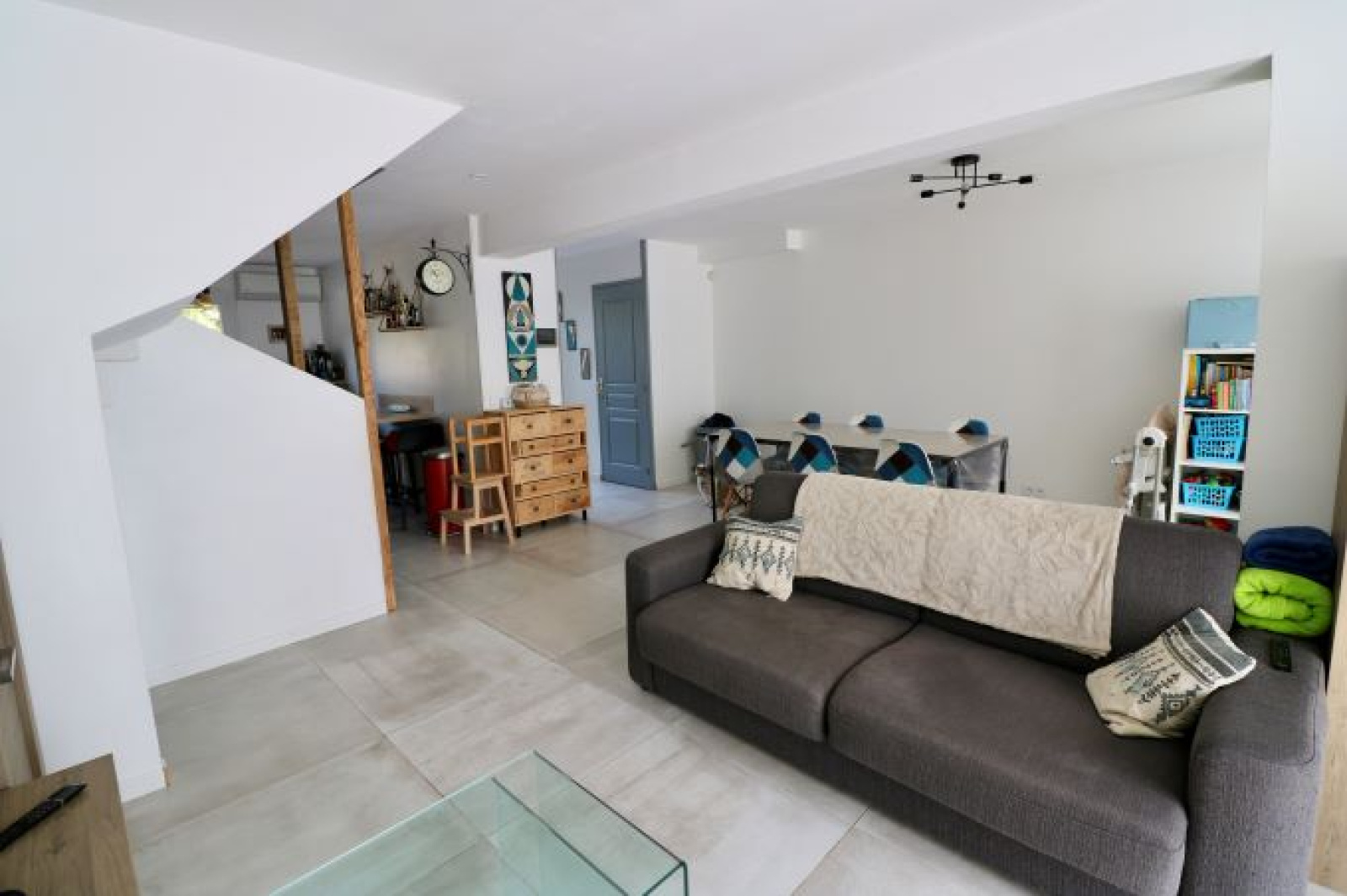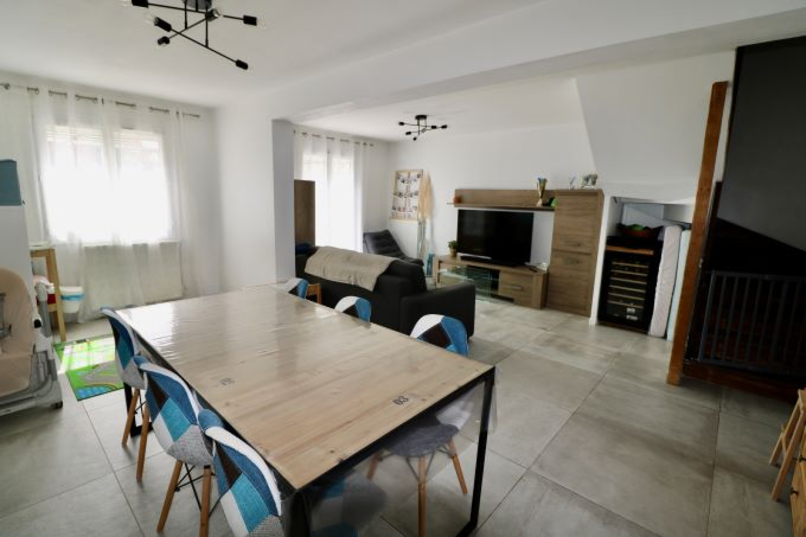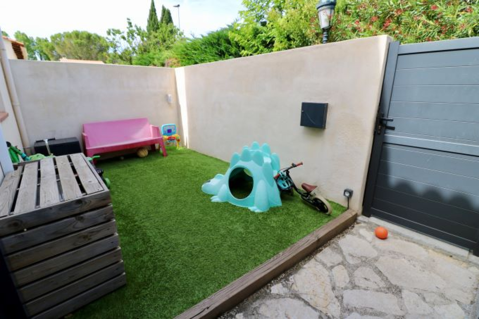 Cette maison T4 d'env 94 m² entièrement rénovée et décorée au goût du jour, a vendre dans le village d'Aix - Les Milles, est située dans un lotissement, à proximité des commerces et écoles à pied. Elle se compose au rez de chaussée d'une véranda, d'un hall d'entrée avec rangements, d'une cuisine équipée ouverte sur le séjour de 41 m² donnant sur la terrasse avec tonnelle et bassin (piscine) et d'un WC indépendant. A l'étage, 3 chambres avec placards, une salle de bains avec le coin machine à laver et WC.