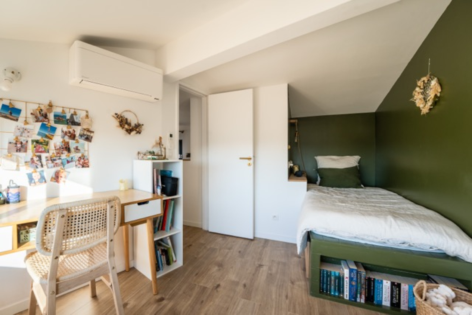 - au 2ème étage : de 2 chambres mansardées avec rangements et d'une salle de bains avec WC.