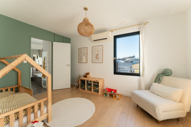 - au 1er étage : d'une suite parentale avec dressing sur mesure, salle d'eau et terrasse, de 2 chambres avec une salle de bains communicante et d'un WC indépendant,