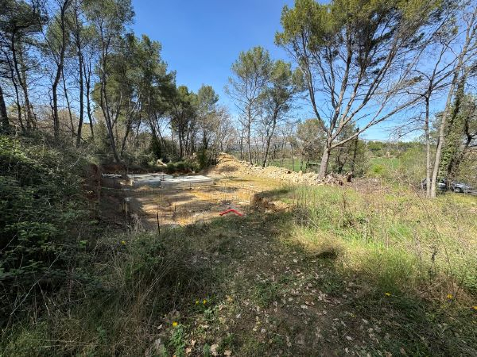 Terrain de 4 202 m² en restanques, arboré de pins avec belle vue sur la Sainte Victoire, a vendre avec un projet de construction accordé et purgé de tout recours pour une maison d'une surface de plancher de 156 m² sur 2 niveaux avec garage et terrasse, soit 142 m² habitable avec 4 chambres. Viabilités en bordure. Prix du terrain seul sans la construction. Bien non soumis au DPE. Mandat 2021225CF. FAI. Honoraires à la charge du vendeur.
