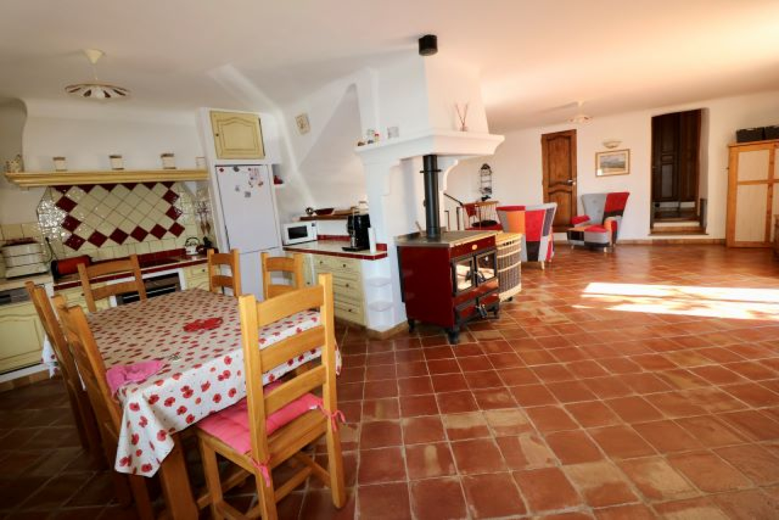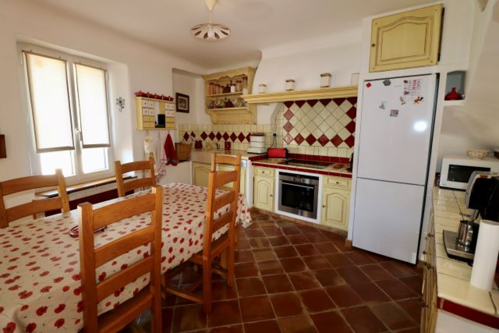 Cette charmante maison de ville T4 de 106,33 m² hab et 126,82 m² de surface utile, a vendre dans le village d'Eguilles, est entièrement rénovée avec goût et propose jardin et parking. La maison est composée au rez de chaussée d'un hall d'entrée avec placards, d'un salon (29,33 m²) avec poële à bois, d'une cuisine / salle à manger équipée (20,47 m²) donnant sur une grande terrasse couverte et découverte, d'une buanderie; à l'étage, de 3 chambres (placards + mezzanine) dont une suite avec sa salle de bain, et d'une salle d'eau avec WC. Un abri jardin fermé et 2 espaces de parking complètent ce bien sur une parcelle de 250 m². Ancienne maison de charme en parfait état, entièrement rénovée avec goût et climatisée. Possibilité de faire une activité professionnelle. CLASSE ENERGIE : D et CLASSE CLIMAT : B. Mandat 2021283CF. FAI. Honoraires à la charge du vendeur.