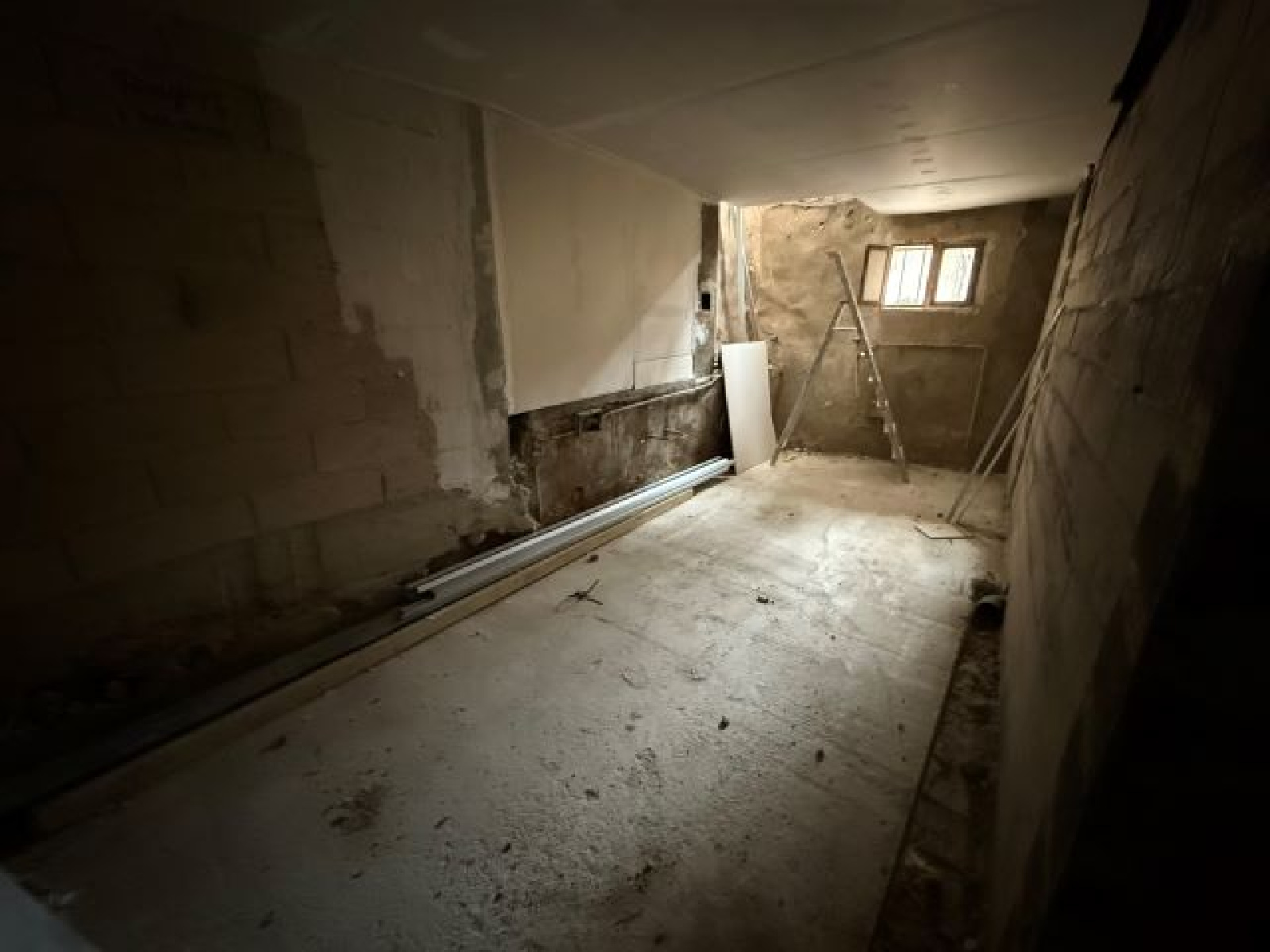 - au rez de chaussée : d'un hall d'entrée, d'un séjour bénéficiant d'une double exposition (Est-Ouest) avec cuisine à créer, d'une chambre, d'une salle d'eau et d'un WC à créer,