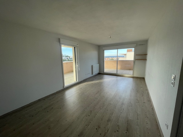 Cet appartement T3 de 60,63 m² avec une grande terrasse de 32,02 m² vue Sainte-Victoire, a vendre sur Aix en Provence quartier Sud, se compose d'un séjour avec cuisine semi-équipée ouvrant sur la terrasse, d'un dégagement donnant sur 2 chambres, d'une salle de bain et d'un WC séparé.