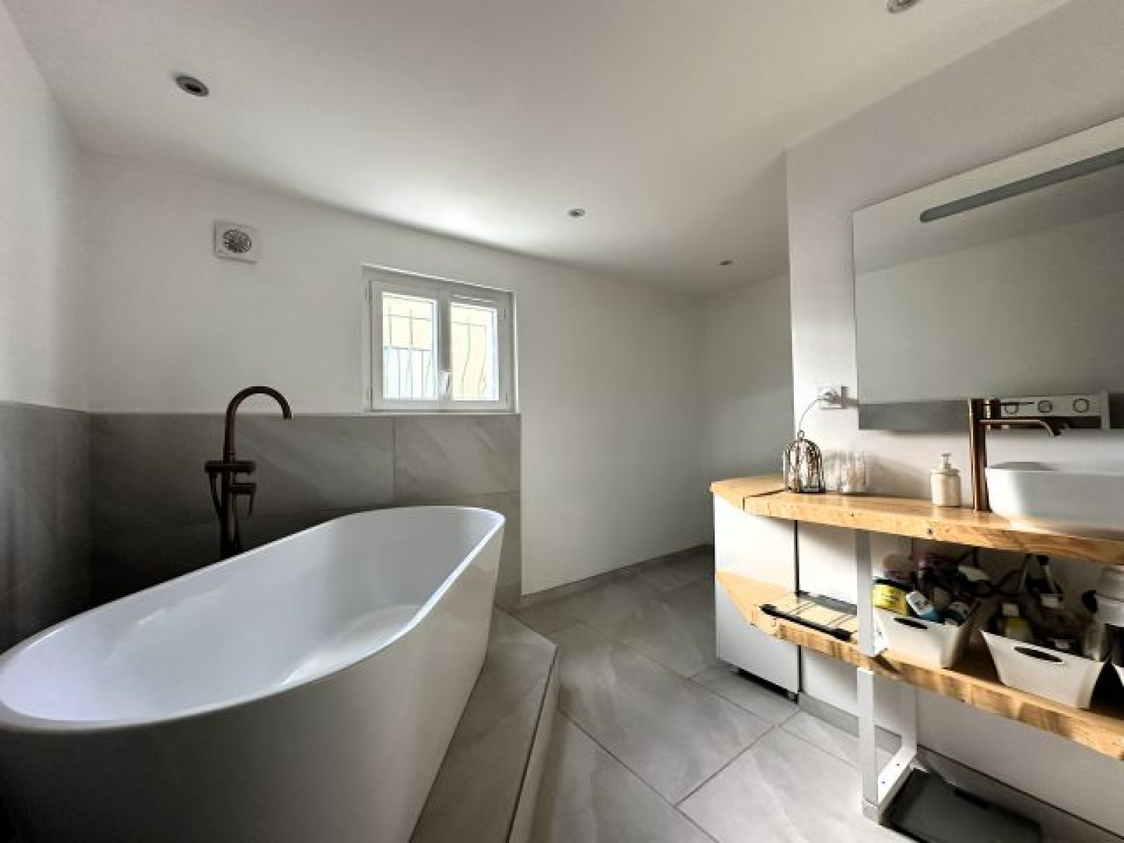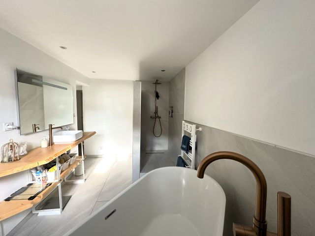 - Un appartement T3 au RDJ d'environ 81 m² habitables comprenant un séjour avec cuisine ouverte, 1 chambre avec dressing, un bureau/dressing, une buanderie, une salle de bain avec baignoire et douche, et un WC indépendant. CLASSE ENERGIE : C et CLASSE CLIMAT : A.